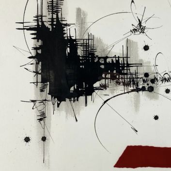Georges MATHIEU (1921-2012) Composition, 1966 Encre de Chine et collage de feutrine sur papier